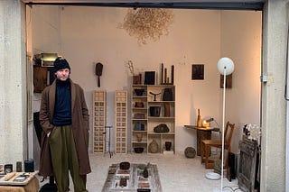A portrait of a young dealer who treats antiques as art installations, and value as something felt rather than calculated.