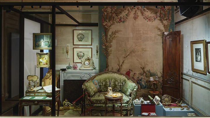 ⚜️ Stepping further back in time, Une journée au XVIIIe siècle, chronique d’un hôtel particulier has just opened at the Musée des Arts Décoratifs, inviting you to immerse yourself in the life of a Parisian townhouse of the 1780s, a few years before the Revolution reshaped life in Paris. Recreated with over 550 objects – from furniture, wallpaper and silverware to fashion accessories, toys, and even household pets – the exhibition also highlights the clever inventions of the day: folding furniture, tables on wheels, and even an ingenious curved eye-bath, all reminders that the 18th century was as much about innovation as it was about elegance.
