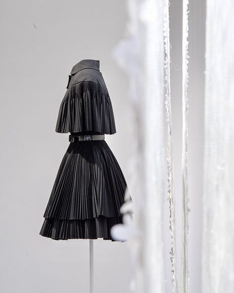 🪡 Part two of the duo of exhibitions celebrating Azzedine Alaïa’s passion for Dior opened yesterday at the Fondation Azzedine Alaïa, completing the latest Gallery Dior display. An inspired and extravagant collector, Alaïa amassed over 500 Dior pieces during his life, and for this exhibition nearly 70 designs – archival 1950s Dior and Alaïa’s own creations – enter a thrilling dialogue, revealing how two generations of couturiers explored accentuated waists, sculpted shoulders, curved hips, voluminous skirts and a refined palette of black and grey in their own distinct ways, and for their own times.