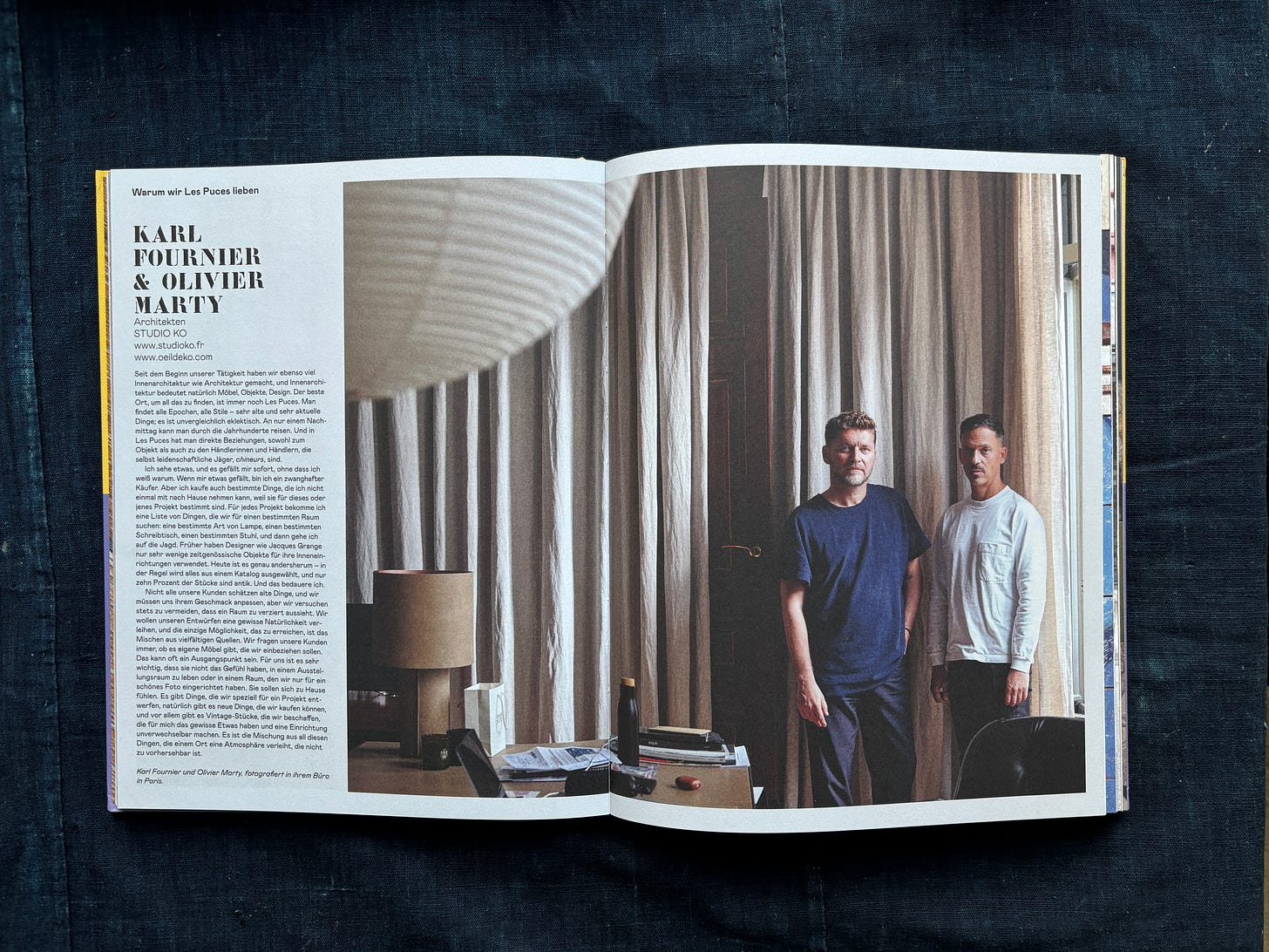 Karl Fournier and Olivier Marty, founders of Studio KO, belong to a generation of architects for whom the Puces de Saint-Ouen are not a weekend diversion but a working landscape. Long before Studio KO became synonymous with tactile, layered interiors and architecture rooted in place, the flea market was already shaping their eye. For them, the Puces are less about nostalgia than about movement β across time, styles, and uses β a living archive where objects are encountered and reactivated. Many of these finds begin a second life in their online shop and gallery, LβOeil de KO, a manifesto of their instinctive taste. In this conversation, they reflect on how hunting, combining and living with objects informs their practice, and why the flea market remains one of the last truly eclectic territories in contemporary design.